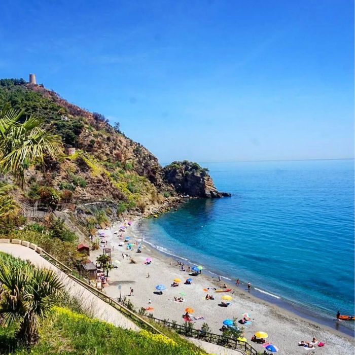Playa de Maro nalazi se kod Nerje, otprilike 50 kilometara istočno od Malage, i to je već druga priča. More je osjetno čišće, boja ide prema tirkiznoj, a iza vas su stijene i priroda, a ne gradska zgrada i šetnica. Ovo je plaža gdje stvarno poželite ostati cijeli dan, a ne samo prošetati uz more.